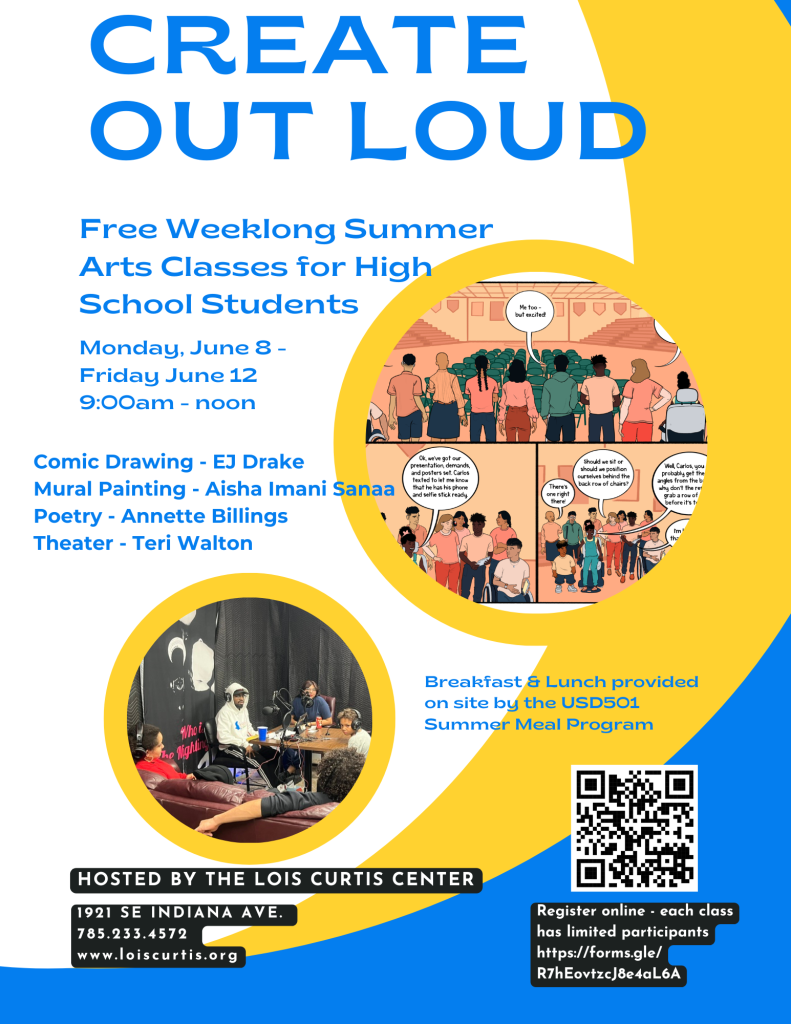 Is your teen looking to stay busy during Summer Vacation. With our Workshops they can learn to Make their own Comic Books, write poetry, theater or install murals throughout Topeka.